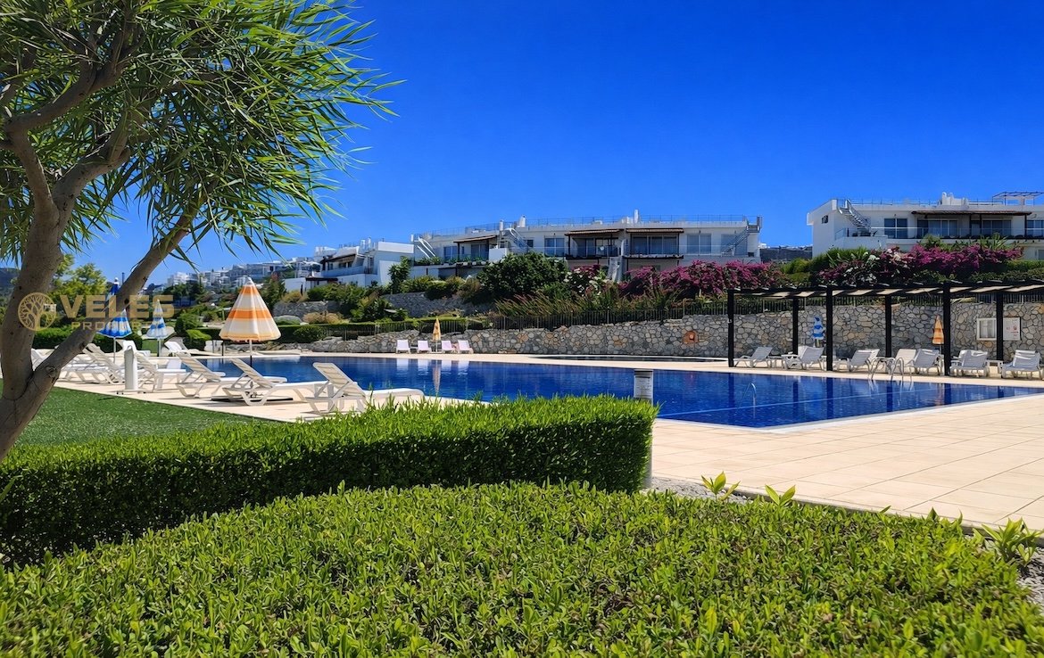 Zum Verkauf steht eine gemütliche Wohnung im Erdgeschoss einer geschlossenen Wohnanlage in der malerischen Region Esentepe. Die Raumaufteilung umfasst ein helles Wohnzimmer mit offener Küche, zwei komfortable Schlafzimmer und eine großzügige private Terrasse mit direktem Zugang zum gepflegten Garten.