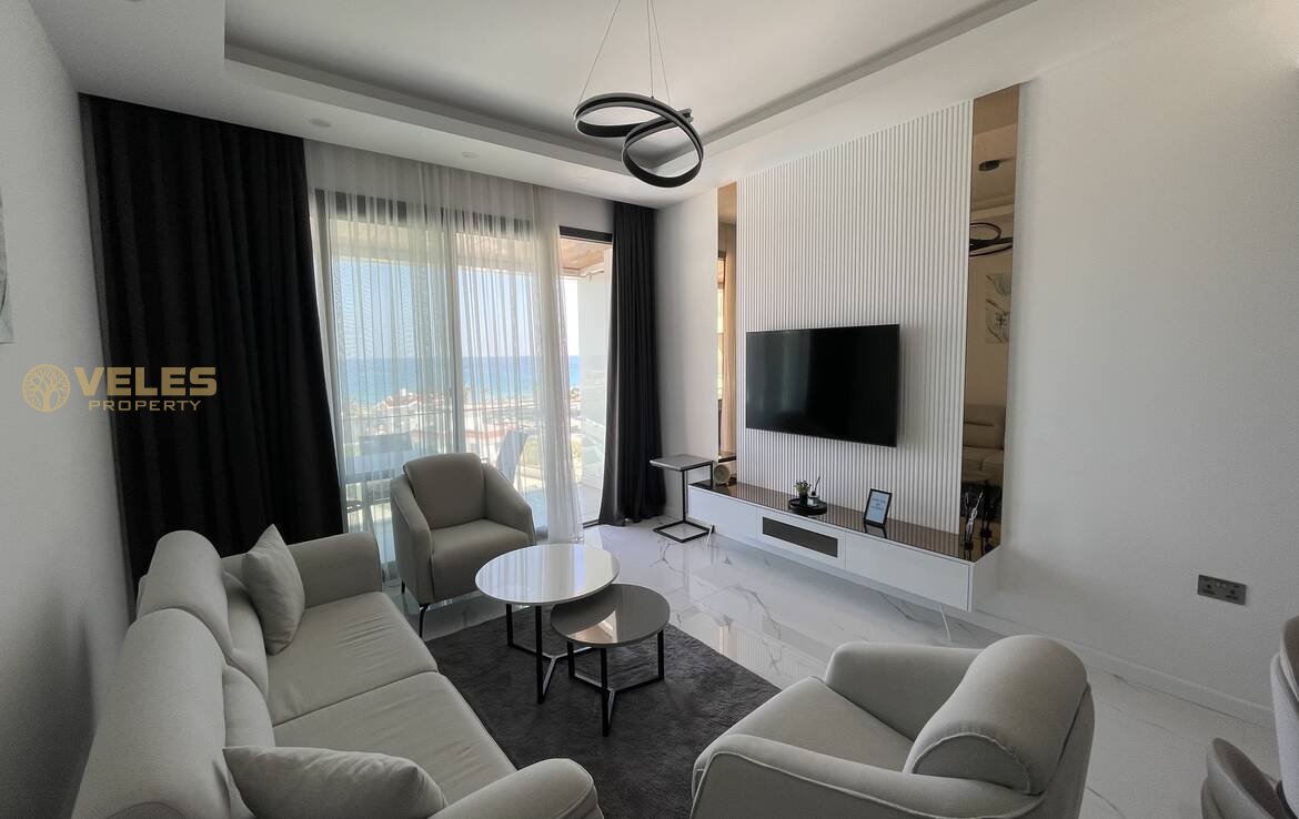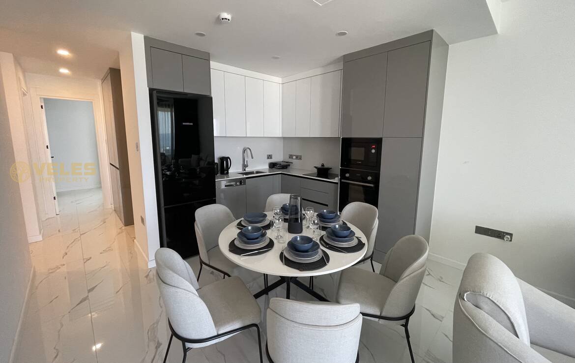 Die großzügige 2+1 Wohnung (97 m²) bietet einen atemberaubenden direkten Meerblick und ist vollständig mit hochwertigen Möbeln ausgestattet. Sie ist sofort bezugsfertig und eignet sich sowohl für den Eigenbedarf als auch zur Vermietung.